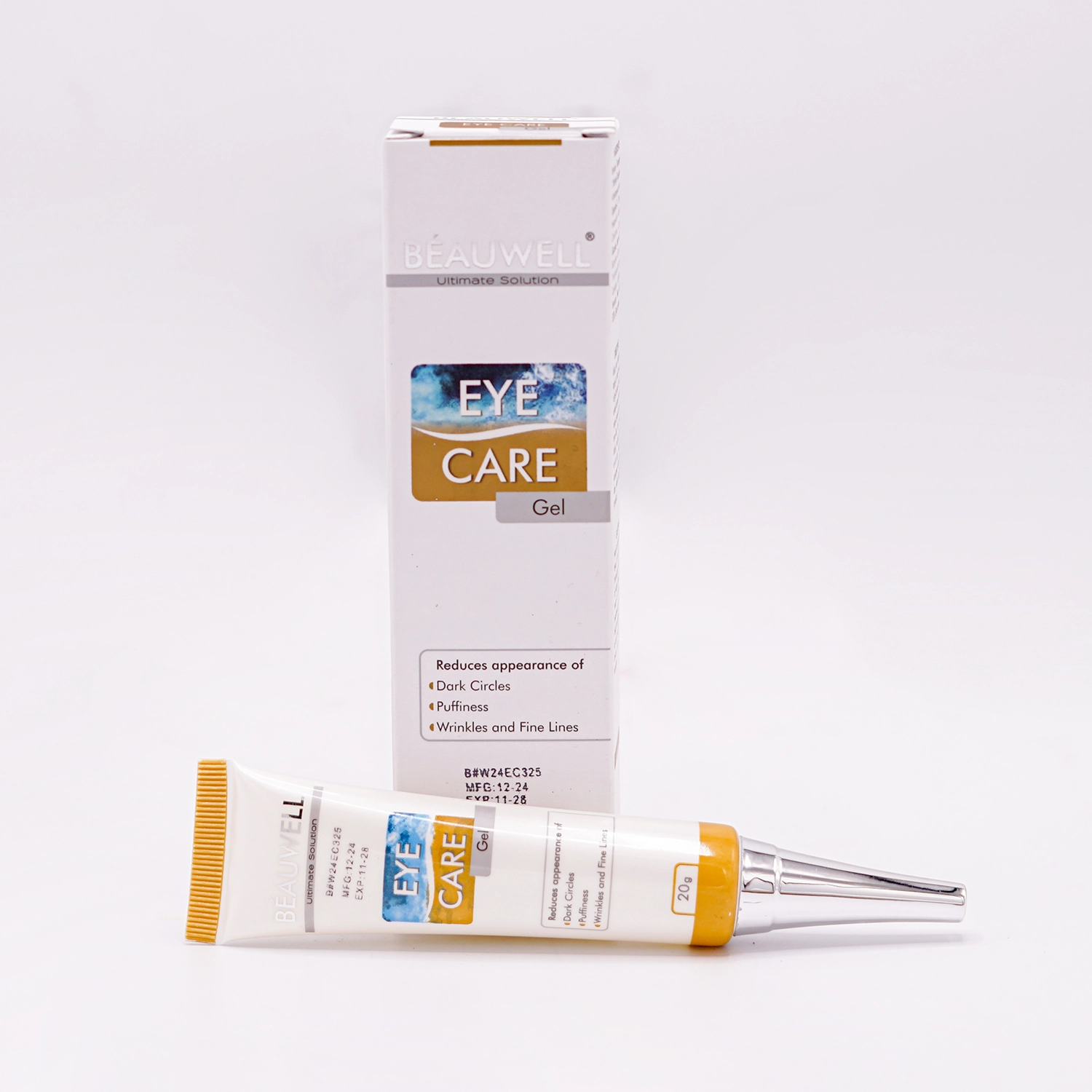 Beauwell Eye Care Gel targets dark circles, puffiness, and fine lines. It reduces dark circles, puffiness, hydrates, and promotes even skin tone.