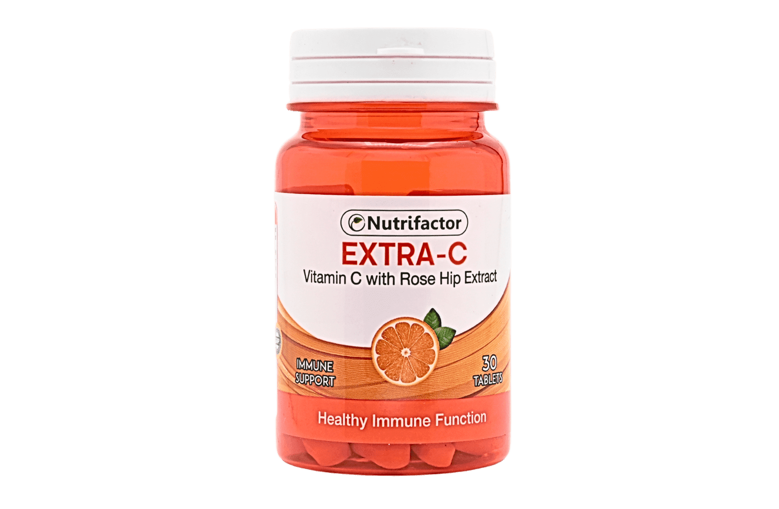 Extra-C is a dietary supplement that combines Vitamin C with Rose Hips extract to support a healthy immune system and provide antioxidant protection. The product is available in tablet and gummy form, with tablets containing 500mg of Vitamin C and 50mg of Rose Hips extract per serving.