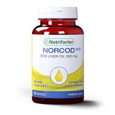 Norcod supports cardiovascular health, strong bones/teeth, immune defense, and brain health. It contains Cod Liver Oil, Vitamin A, D, EPA, and DHA.