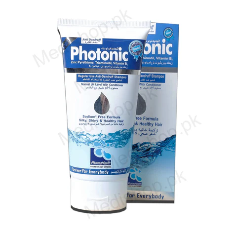n Pakistan, Photonic Anti-Dandruff Shampoo is described as a unique formulation designed to treat dandruff, seborrheic dermatitis, and associated itching by leveraging active ingredients like Triaminodil (for hair growth), Zinc Pyrithione (anti-dandruff), and Climbazole (anti-fungal). It deep cleanses the scalp by managing sebum, fights hair loss, nourishes hair roots, and improves hair texture with regular use, all while maintaining a sodium-free, normal pH level to minimize irritation.