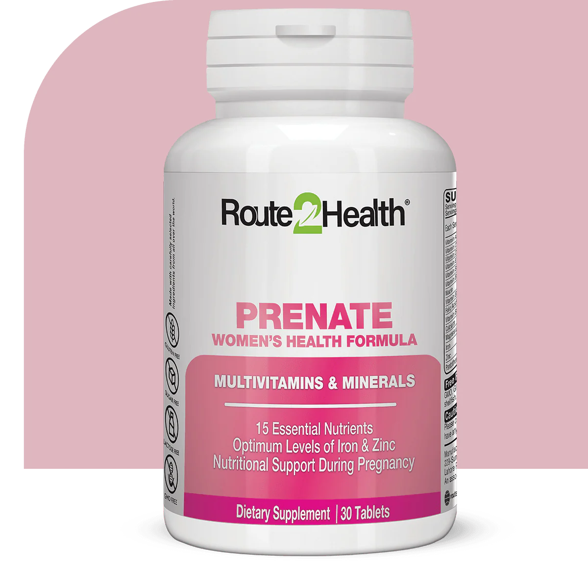 Route 2 Health Prenate is a multivitamin-mineral supplement for mothers and mothers-to-be, containing 15 essential nutrients like iron, calcium, zinc, and various vitamins, to support a healthy conception, pregnancy, and breastfeeding journey. It is designed to be an “all-in-one” tablet that helps meet the increased nutritional needs during this period with a single tablet per day.