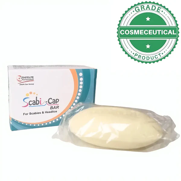 Scabi-Cap soap is a medicated soap used to treat scabies and head lice, containing the active ingredients Permethrin and Sulphur. It works by killing the mites and lice that cause these infestations, while also providing relief from itching and irritation. To use, lather the soap on affected areas, leave it on for a few minutes (at least 5 minutes before rinsing), and use daily until the infestation is clear.