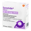 Diskus: Salmeterol + Fluticasone propionate Dry Powder for Inhalation 50/250 mcg (Seretide 250 Diskus) is a moulded plastic device containing a foil strip with 60 regularly placed blisters each containing 50 micrograms of salmeterol as salmeterol xinafoate and 250 micrograms of fluticasone propionate